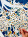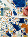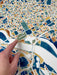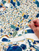 *This is an original watercolor block painting created in my Tacoma studio, in 2025. It began as a commission for a client in navy blue only. I spilled a bit of paint on the border and had to start again. This 1/5-complete piece sat in my flat file for several months before I decided to give it a life - in more vibrant color! Earthy browns, pinks, greens and ochres complement the original navy blue blocks. Each block watercolored by hand. Paint "damage" on border is shown in the photos here.