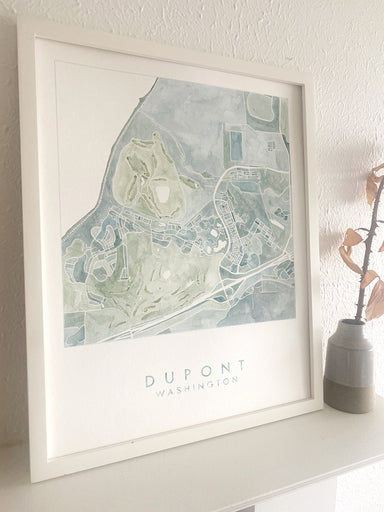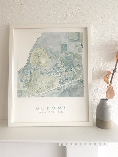 DuPont, Washington Original Art Map Painting. This Watercolor Map focuses on DuPont's town core - the new Clocktower Park adjacent the Village Hist...
