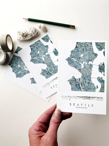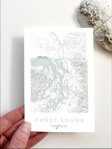 My PUGET SOUND Watercolor Map, now on a Postcard - Show some local love for your favorite city! My hand-drawn Map depicts the Puget Sound, its coas...