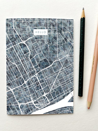 My DETROIT "Urban Fabrics" Coal Watercolor Map, now on a Greeting Card - Show some local love for your favorite city, the "Motor City"! 16 pt Matt...
