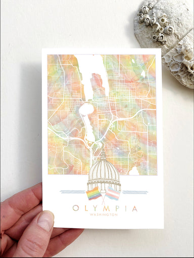 My OLYMPIA WA Capitol PRIDE Map, now on a Postcard - Show some local love for your favorite city! My sketch of the Pride and Trans Pride flags that...