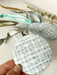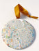 Ornament measures 3.5" x 3.5" (Circle) and hangs from a satin matching ribbon. Unpackaged.