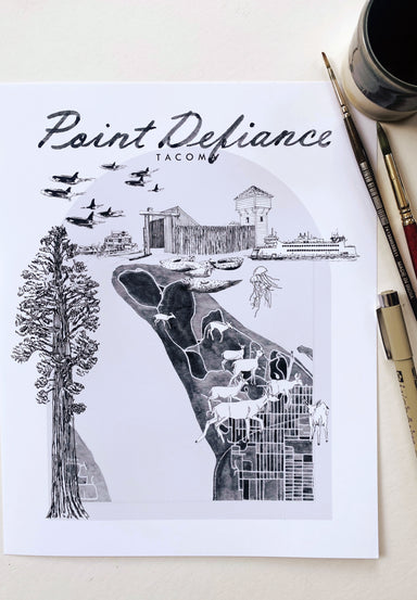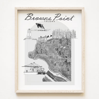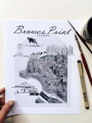 Celebrate your Neighborhood in TACOMA, Washington: BROWNS POINT / NORTHEAST* TACOMA! This is a Black and White PRINT of my Original Watercolor City...