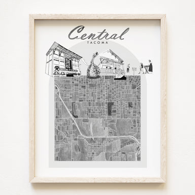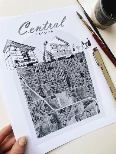 Celebrate your Neighborhood in TACOMA, Washington: CENTRAL TACOMA! This is a Black and White PRINT of my Original Watercolor City Blocks Map. PLUS ...