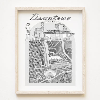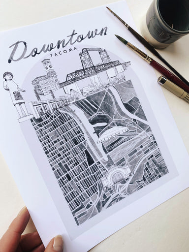 Celebrate your Neighborhood in TACOMA, Washington: DOWNTOWN! This is a Black and White PRINT of my Original Watercolor City Blocks Map. PLUS my ske...