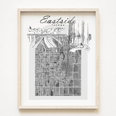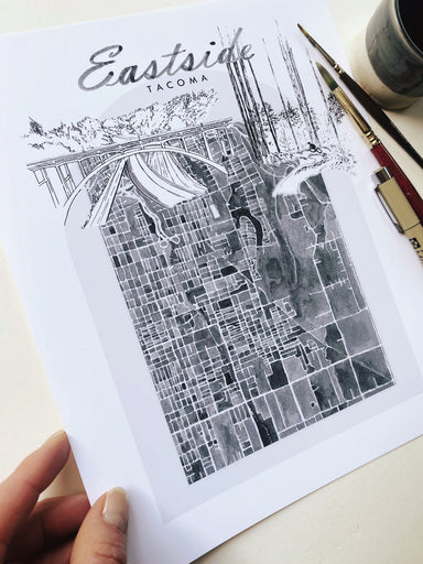 Celebrate your Neighborhood in TACOMA, Washington: EASTSIDE! This is a Black and White PRINT of my Original Watercolor City Blocks Map. PLUS my ske...