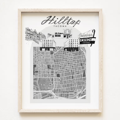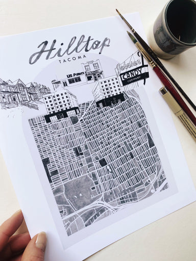 Celebrate your Neighborhood in TACOMA, Washington: HILLTOP! This is a Black and White PRINT of my Original Watercolor City Blocks Map. PLUS my sket...