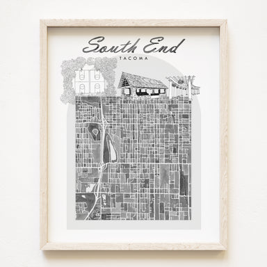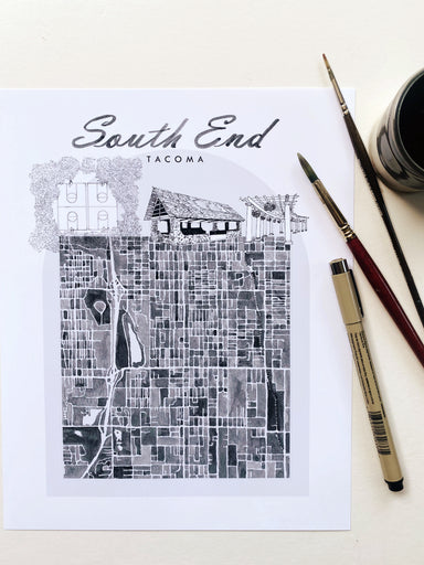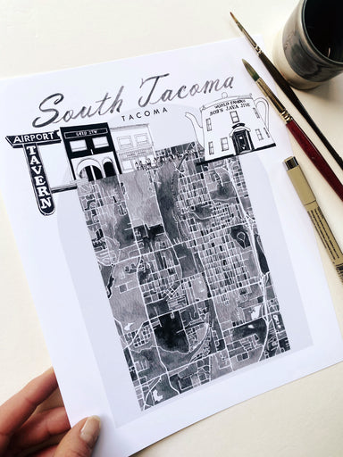 Celebrate your Neighborhood in TACOMA, Washington: SOUTH TACOMA! This is a Black and White PRINT of my Original Watercolor City Blocks Map. PLUS my...