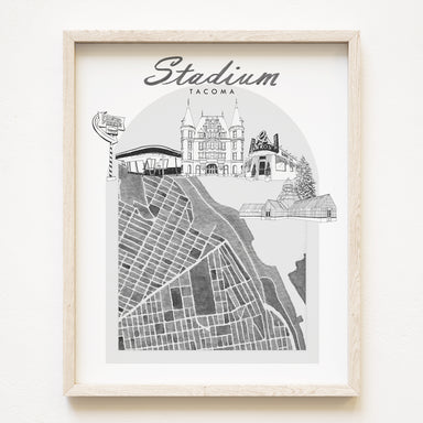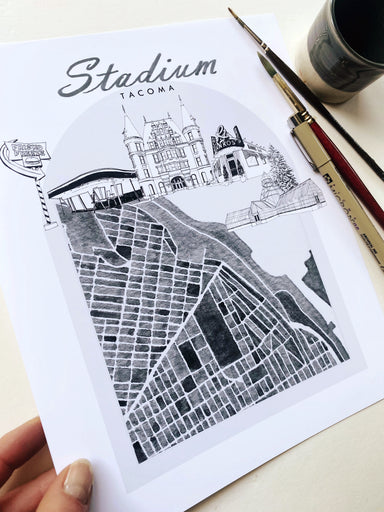 Celebrate your Neighborhood in TACOMA, Washington: STADIUM! This is a Black and White PRINT of my Original Watercolor City Blocks Map. PLUS my sket...