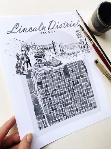 Celebrate your Neighborhood in TACOMA, Washington: LINCOLN DISTRICT! This is a Black and White PRINT of my Original Watercolor City Blocks Map. PLU...