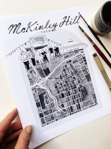 Celebrate your Neighborhood in TACOMA, Washington: MCKINLEY HILL! This is a Black and White PRINT of my Original Watercolor City Blocks Map. PLUS m...