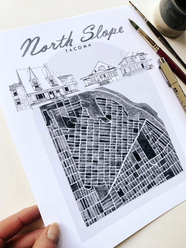 Celebrate your Neighborhood in TACOMA, Washington: NORTH SLOPE! This is a Black and White PRINT of my Original Watercolor City Blocks Map. PLUS my ...