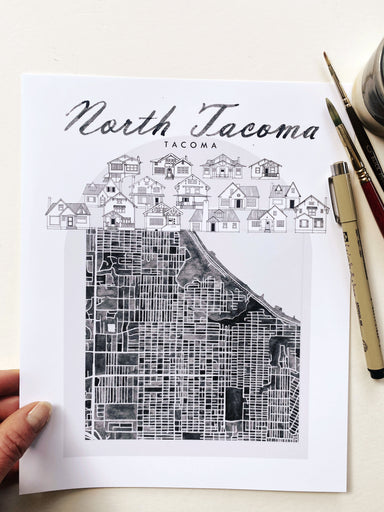 Celebrate your Neighborhood in TACOMA, Washington: NORTH TACOMA! This is a BLACK AND WHITE PRINT of my Original Watercolor City Blocks Map. PLUS my...