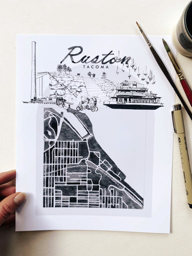 Celebrate your Neighborhood in RUSTON, Washington! This is a Black and White PRINT of my Original Watercolor City Blocks Map. PLUS my sketches of t...