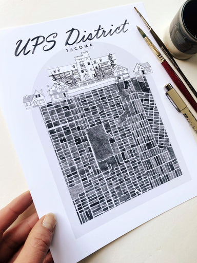 Celebrate your Neighborhood in TACOMA, Washington: UPS DISTRICT! This is a Black and White PRINT of my Original Watercolor City Blocks Map. PLUS my...