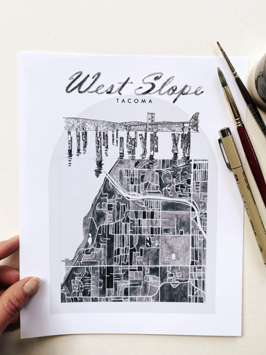Celebrate your Neighborhood in TACOMA, Washington: WEST SLOPE! This is a Black and White PRINT of my Original Watercolor City Blocks Map. PLUS my s...