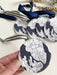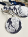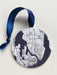 Ornament measures 3.5" x 3.5" (Circle) and hangs from a satin ribbon, varying colors to complement the art map.