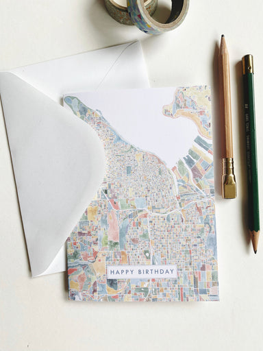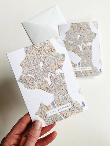 My ColorFULL SEATTLE Washington Watercolor Map, now on a BIRTHDAY card - Show some local love for your favorite city while saying HAPPY BIRTHDAY! 1...
