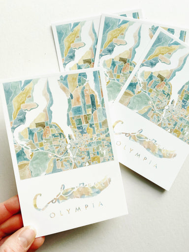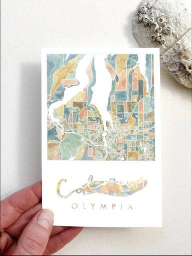 My ColorFULL OLYMPIA Washington Hand-painted Watercolor Map, now on a Postcard - Show some local love for your favorite city! Colorful watercolor s...