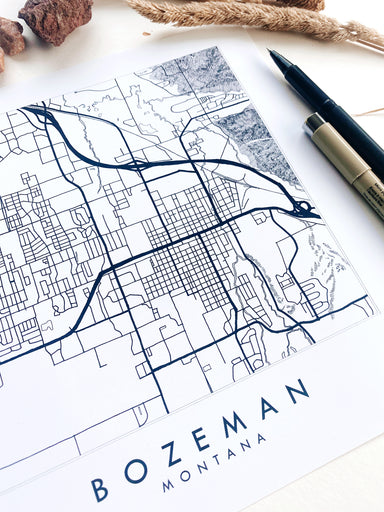 BOZEMAN, Montana. This is a PRINT of my original black ink line drawing. Epson archival coated paper / Epson Professional high-quality inkjet print...