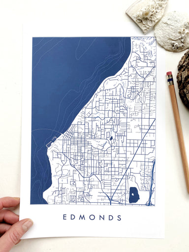 EDMONDS, Washington - the cutest ferry town! For your Map Wall, memento of your adventures, reminder of home. This is a Print of my original ink li...
