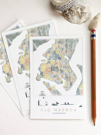 My ColorFULL GIG HARBOR Washington Hand-painted Watercolor Map, now on a Postcard - Show some local love for your favorite city! Colorful watercolo...