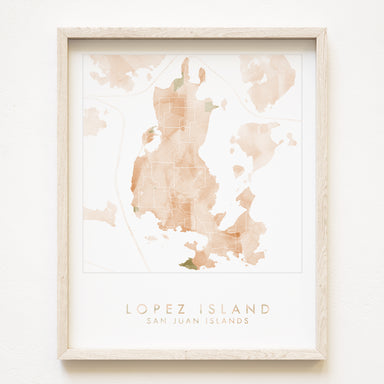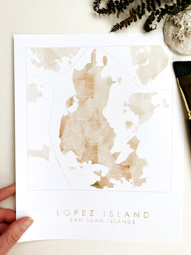 LOPEZ ISLAND San Juan Islands, Washington Watercolor Wash Map Art Print.For your Map Wall, reminder of home, signal local-love. Great as a gift for...