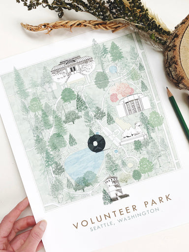 VOLUNTEER Park, SEATTLE, Washington City Map Art Print.For your Map Wall, memento of your PNW adventures, reminder of home.My hand-drawn, layered m...