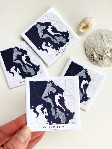 WHIDBEY ISLAND Washington "Blueprint" Map, now on a Magnet - Show some local love for your favorite island in the Puget Sound! This is a METAL MAG...