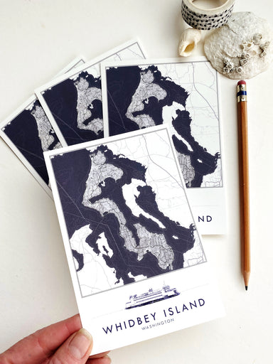 My WHIDBEY ISLAND Washington Hand-drawn "Blueprint" Map, now on a Postcard - Show some local love for your favorite island in the Puget Sound! My h...