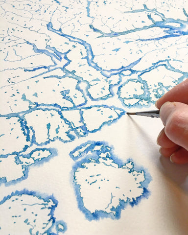 SYKKYLVEN More Og Romsdal, NORWAY. This is a PRINT of my original hand-painted watercolor painting in variegated tones of blue water and some grey ...