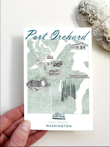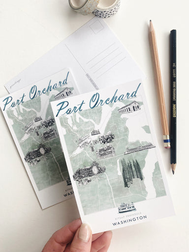 My PORT ORCHARD WA Hand-drawn "Blueprint" Map, now on a Postcard - Show some local love for your favorite harbor town! My hand-drawn ink line drawi...