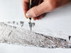 This is a POSTCARD of my original hand-drawn topo drawing, tinted dark blue, with the Olympic National Park delineated in sage green. Two hand-drawn views complement the Map - a view of the Olympic from the Sound and a view of the peaks and ridges from within the Range, near Hurricane Ridge.