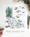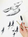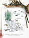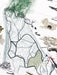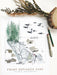 This is a PRINT, created by digitally combining my many hand-made drawings. This version is vertical, or portrait, format, with less focus on the map to let the forest grow tall and make room for the orca pod.