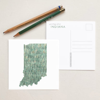 INDIANA! This is a POSTCARD of Indiana from my "Urban Fabrics" Map Collection in "GRASS" - wispy strokes evoke blades of grass, with pink and gold ...