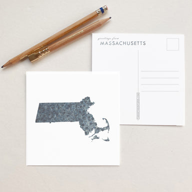 MASSACHUSETTS! This is a POSTCARD of Massachusetts from my "Urban Fabrics" Map Collection in "WAVES" - tones of deep blues with wavy graphite lines...