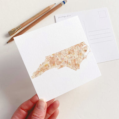NORTH CAROLINA! This is a POSTCARD of North Carolina from my "Urban Fabrics" Map Collection in "EARTH" tones of pink, orange and browns. Great as s...