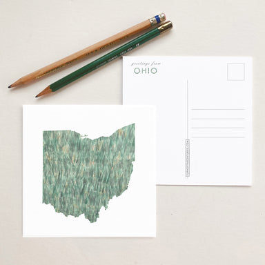 OHIO! This is a POSTCARD of Ohio from my "Urban Fabrics" Map Collection in "GRASS" - wispy strokes evoke blades of grass, with pink and gold interw...
