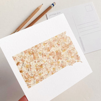 SOUTH DAKOTA! This is a POSTCARD of South Dakota from my "Urban Fabrics" Map Collection in "EARTH" tones of pink, orange and browns. Great as stati...