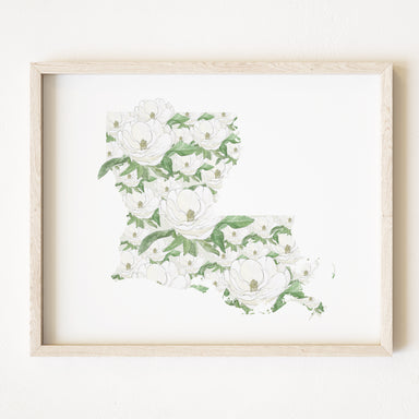 LOUISIANA State Flower Map: Magnolia: PRINT
