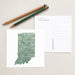 This is a POSTCARD of Indiana from my "Urban Fabrics" Map Collection in "GRASS" - wispy strokes evoke blades of grass, with pink and gold interwoven.