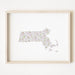This is a PRINT from my "State Flowers" Map Collection. The Massachusetts State Map is rendered in a field of mayflower, its delicate state flower, hand painted by me with watercolor.