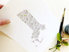 A great accent piece for a Map Wall of places lived and loved! Free Customization - Just let me know in the Personalization Tab if you'd like me to mark a special spot on the map with a small white or dark green heart or dot - color will depend on where your spot falls on the map pattern - on or between flowers. (I want the mark to be visible to you.)