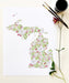 MICHIGAN State Flower Map: Apple Blossom: PRINT