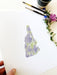 This is a PRINT from my "State Flowers" Map Collection. The New Hampshire State Map is rendered in a mass of purple lilac, its fragrant state flower, hand painted by me with watercolor.