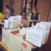 The Sears house on Sears Hill joined to the former warehouses of the Wharf (and tips of the downtown skyline) by The Bridge. Surrounded by the water tower, the railroad, the cut-away cliff, the Depot, the re-purposed Cars and Cabooses. All criss-crossed about by the White Bunting created for Bridge Day by Rachel's Quilts. Balloons lift off from the bridge in celebration under a pink cotton candy sky!