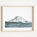 Blue watercolor, and grey to model the fissures and gorges in Tahoma’s majestic rise, with a bit of green undertones at the foot of the mount. Graphite hachures layered over the watercolor echo the forest at it’s base.