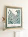 TACOMA, Washington. Original Watercolor City Blocks Map in the colors of the Pacific Northwest, Framed.