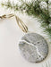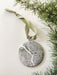 Ornament measures 3.5" x 3.5" (Circle) and hangs from a satin ribbon, varying colors to complement the art map.