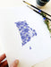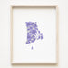 This is a PRINT from my "State Flowers" Map Collection. The Rhode Island State Map is rendered in a field of violets, its diminutive and delicate state flower, hand painted by me with watercolor.